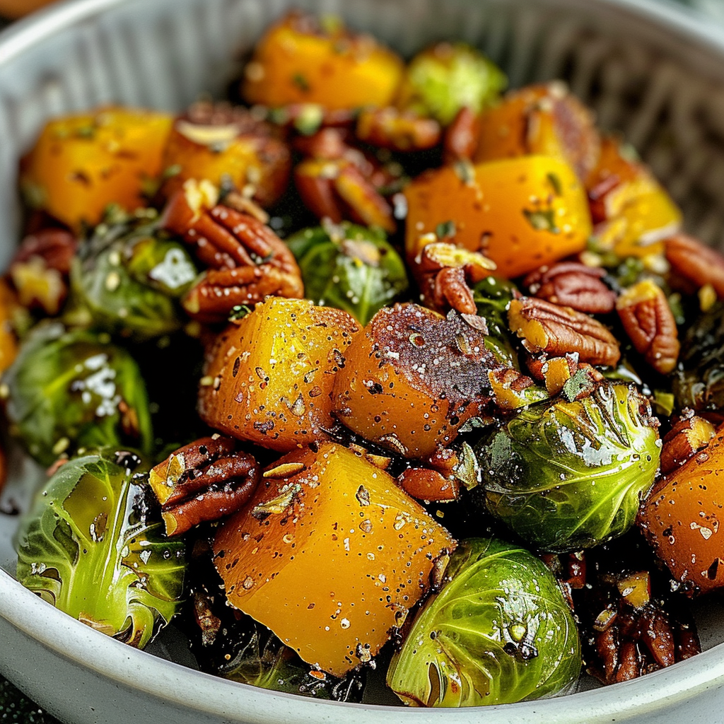 Absolutely! If you don’t have butternut squash, other winter squashes like acorn or pumpkin work well. For brussels sprouts, try using green beans or broccoli as alternatives. You can also swap candied pecans for walnuts or almonds if needed. Just remember that different nuts may alter the flavor slightly, so choose according to your taste preferences.