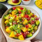 Avocado Mango Salad is loaded with health benefits. Avocados are rich in healthy fats and fiber, which promote heart health and digestion. Mangoes provide essential vitamins A and C, boosting your immune system and skin health. Together, these ingredients create a nutrient-dense dish that supports overall wellness. Moreover, this salad is low in calories yet filling, making it an excellent choice for weight management.
