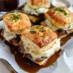 In summary, Baked French Dip Biscuits offer a delightful twist on traditional flavors that everyone loves. They are easy to prepare and perfect for various occasions, from casual dinners to festive gatherings. The combination of buttery biscuits filled with savory beef and melty cheese makes this dish irresistible. Don’t forget to serve it alongside warm au jus for an authentic experience! Try making these Baked French Dip Biscuits at home; they won’t disappoint!