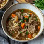 In conclusion, Beef Barley Soup is a nourishing dish that combines tender beef with wholesome barley and fresh vegetables. Its robust flavor and satisfying texture make it perfect for any occasion, especially during chilly seasons. Whether you choose to make it on the stovetop or in a slow cooker, this soup promises warmth and comfort in every bowl. Explore our full recipe index Remember to explore variations that cater to your taste buds while enjoying this classic recipe of Beef Barley Soup!