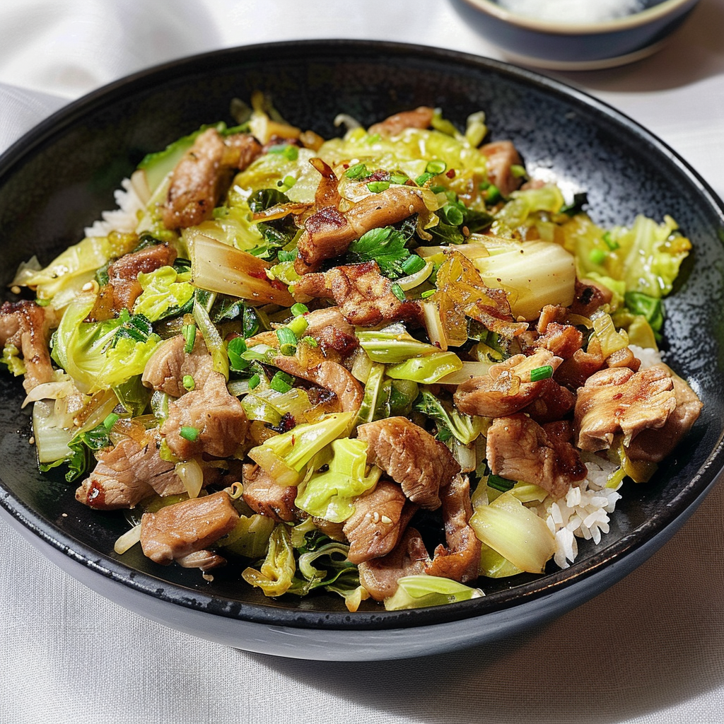 Cabbage and Pork Stir Fry is a delicious and nutritious dish that combines tender pork with fresh cabbage, seasoned with flavorful sauces. This stir fry is quick to prepare, making it an excellent choice for busy weeknight dinners. The dish typically features colorful vegetables, enhancing both taste and presentation. With the right balance of ingredients, this recipe offers a satisfying meal packed with protein and vitamins. It’s versatile too; you can customize it by adding your favorite vegetables or spices to suit your palate.