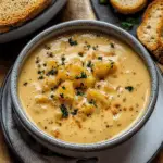Cheesy Potato Soup is a creamy, hearty dish made primarily from potatoes, cheese, and various seasonings. This comforting soup typically includes ingredients like butter, milk, and sometimes vegetables like onions or garlic for added flavor. perfect fall dessert pairing It’s perfect for cold days and can be served as a main course or a side dish. The combination of gooey cheese with tender potatoes creates a delightful texture and taste that many enjoy.