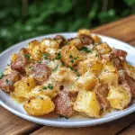Cheesy Ranch Potatoes and Smoked Sausage is a mouthwatering comfort dish that combines crispy, golden potatoes with savory smoked sausage, all drenched in gooey cheese and zesty ranch dressing. Perfect for potlucks or cozy family dinners, this recipe offers a delightful explosion of flavors that will have everyone coming back for seconds. With minimal prep time and simple ingredients, it’s an easy way to bring warmth and nostalgia to your table.