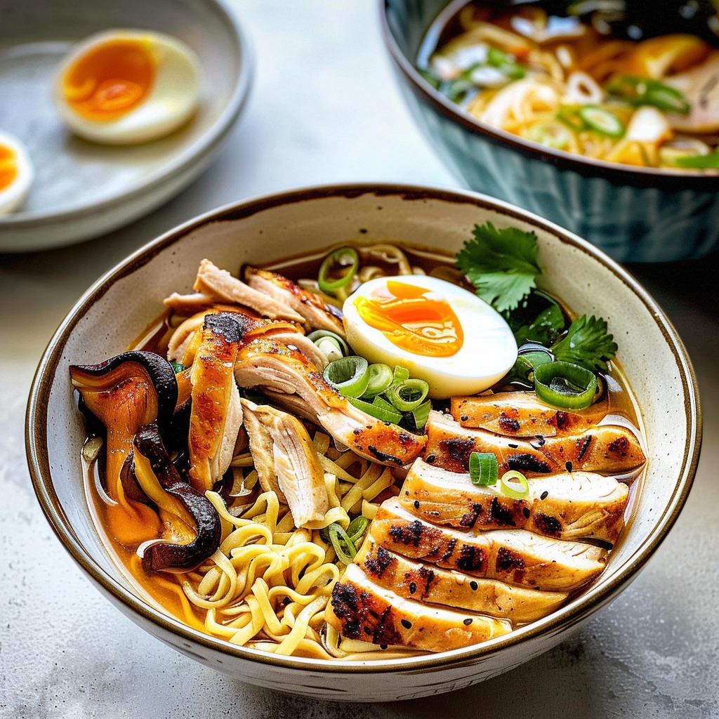 In summary, the Chicken Ramen Bowl is not only easy to make but also incredibly versatile. With its combination of tender chicken, flavorful broth, and fresh ingredients, it’s a dish that satisfies both hunger and cravings. By following simple steps and using quality ingredients, anyone can create their own delicious version at home. Enjoying this delightful meal can bring warmth to any dining experience—perfect for family dinners or cozy nights in!