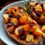 Cranberry Apple Sweet Potatoes pair wonderfully with various main dishes. They complement roasted turkey or chicken beautifully, making them an ideal choice for holiday meals. Additionally, they work well alongside pork chops or glazed ham due to their sweet-tart flavor that balances savory meats. For a vegetarian option, serve them next to quinoa salad or stuffed bell peppers for a wholesome meal. For more inspiration, check out this Baked Cranberry Turkey Sliders recipe.