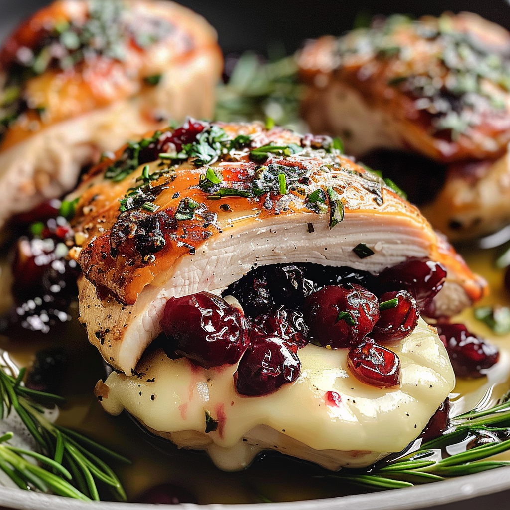 In conclusion, Cranberry Brie Stuffed Chicken is an exquisite dish that brings together savory and sweet flavors in every bite. Its simple preparation makes it accessible for home cooks while still impressing guests at dinner parties. Whether you choose to make it ahead of time or serve it fresh from the oven, this recipe delivers on taste and presentation. Try adding your favorite sides to enhance your meal experience and enjoy this delectable treat any night of the week!
