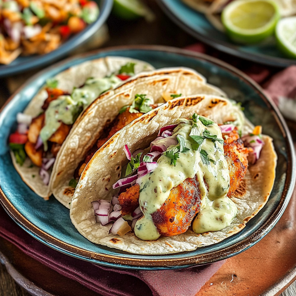 Crispy Baja Fish Tacos with Avocado Crema is a delicious dish that combines crispy battered fish, typically cod or tilapia, served in warm corn tortillas. Topped with a creamy avocado sauce, this dish offers a perfect balance of flavors and textures. The fish is seasoned and fried until golden brown, providing that satisfying crunch. The avocado crema adds a rich and velvety touch that enhances the overall taste. Perfect for taco night or casual gatherings, this recipe has quickly become a favorite among seafood lovers. For more inspiration, check out this Garlic Butter Lobster Tail Recipe recipe.