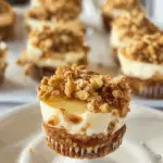 Easy Apple Crisp Mini Cheesecakes are a delightful dessert combining creamy cheesecake with the warm flavors of apple crisp. These mini treats feature a buttery graham cracker crust topped with a smooth cheesecake layer, finished with spiced apple topping and a crunchy oat crumble. brown butter apple blondies They are perfect for serving at gatherings or as a cozy treat at home. The combination of textures and flavors makes them irresistible to both cheesecake lovers and apple dessert fans alike. For more inspiration, check out this Cinnamon Pear Walnut Crumble recipe.