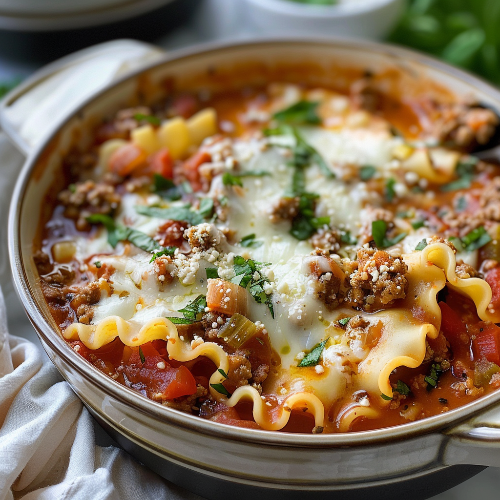 Easy Lasagna Soup is the ultimate comfort food, merging the beloved flavors of classic lasagna into a warm, hearty soup. This one-pot wonder features tender pasta, rich tomato broth, and creamy cheese, making it perfect for cozy weeknight dinners or casual gatherings with friends. With its simple preparation and customizable ingredients, this dish is sure to become a family favorite.