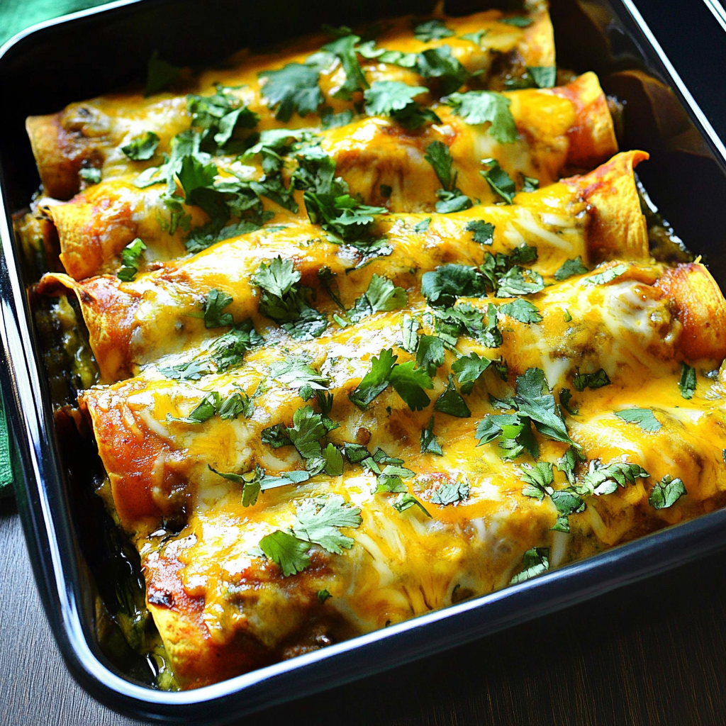 Begin by preheating your oven to 375°F (190°C). Spray a baking dish with nonstick cooking spray so those enchiladas don’t stick like my uncle at family parties when he hears “free food.”
