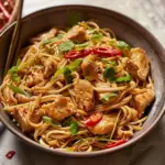 In summary, Garlic Chicken Lo Mein is an easy-to-make dish that offers a delightful blend of flavors and textures. With its tender chicken, vibrant vegetables, and aromatic garlic sauce, it provides both satisfaction and nutrition in one bowl. Customizable options make it suitable for various dietary preferences while ensuring everyone can enjoy this delicious meal at home or during gatherings. Don’t hesitate to try making your own Garlic Chicken Lo Mein; it’s sure to become a family favorite!