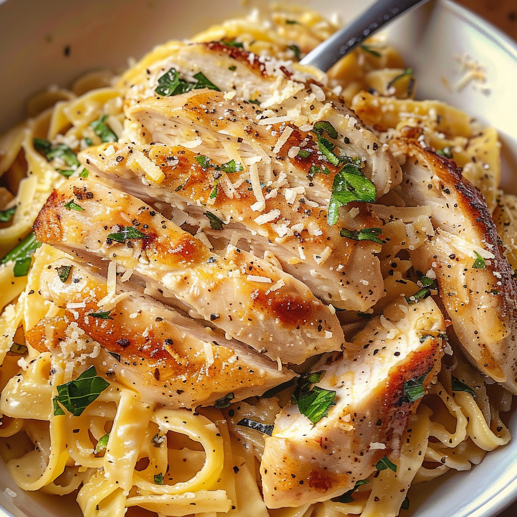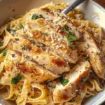 Garlic Parmesan Chicken Pasta is a comforting dish that combines tender chicken, creamy garlic sauce, and al dente pasta for a meal that delights the senses. Perfect for family dinners or gatherings, this recipe is not only delicious but also easy to customize with your favorite ingredients. With its rich flavors and inviting aroma, it’s sure to become a go-to favorite in your kitchen.
