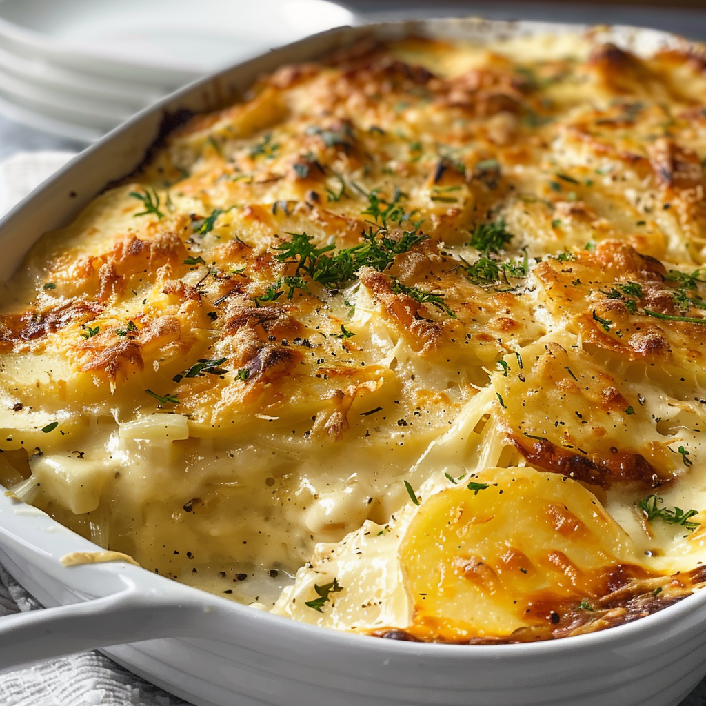 Start by preparing the potatoes, slicing them thinly for even cooking. Next, layer them in a baking dish with cheese and cream while preheating the oven. Bake until golden brown and bubbly, ensuring perfect results every time.