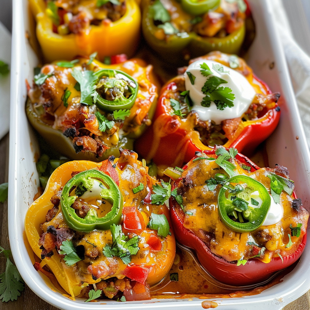 Healthy Mexican-Style Stuffed Peppers are a nutritious dish made by filling bell peppers with a mixture of lean protein, vegetables, and spices. This delightful meal combines flavors typical of traditional Mexican cuisine while offering a healthier twist. Common fillings include quinoa, black beans, corn, diced tomatoes, and spices like cumin and chili powder. These stuffed peppers can be baked until tender and often topped with fresh herbs or avocado for added flavor and nutrition. They serve as a vibrant main course or side dish that is both satisfying and healthy. For more inspiration, check out this Amish Country Casserole recipe.