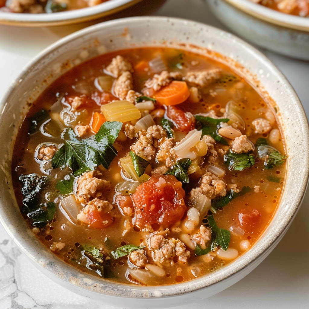 Italian Ground Turkey Soup is a hearty, flavorful dish that combines ground turkey with a medley of vegetables, herbs, and spices. It’s a comforting meal that reflects the rich culinary traditions of Italy while offering a healthy alternative to traditional soups. The use of lean ground turkey makes this soup not only delicious but also nutritious, catering to those seeking lighter meal options without sacrificing flavor. With its aromatic broth and vibrant ingredients, this soup is perfect for cozy dinners or meal prep.