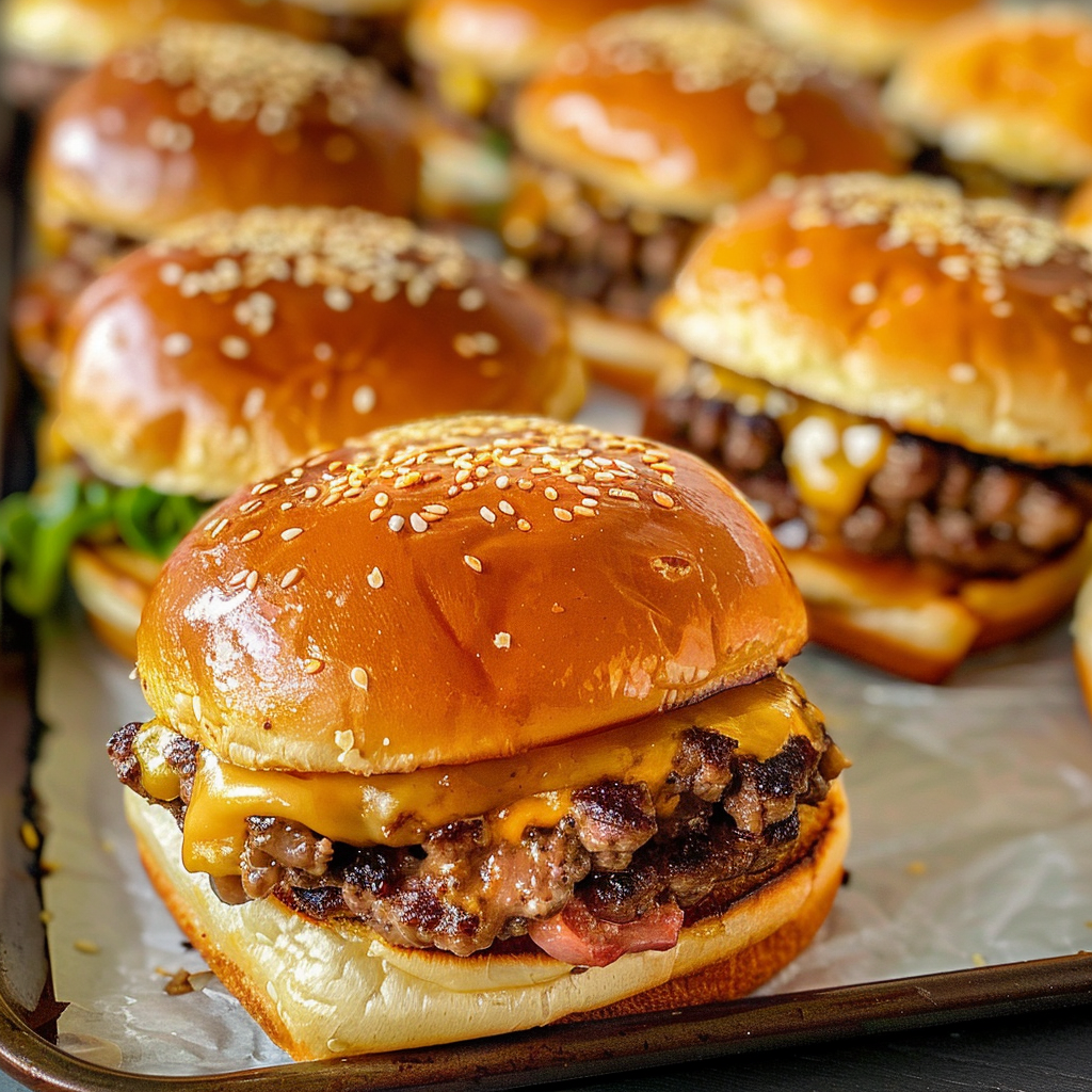 Juicy cheeseburger sliders are deliciously small burgers packed with flavor, perfect for parties or casual gatherings. Typically made with ground beef, these sliders are seasoned and cooked to perfection, often topped with classic ingredients like cheese, lettuce, and pickles. Their bite-sized nature makes them easy to handle and enjoy. These sliders are an excellent way to serve a crowd while allowing guests to customize their toppings. You can prepare juicy cheeseburger sliders in various ways, including grilling or baking, making them versatile for any occasion.