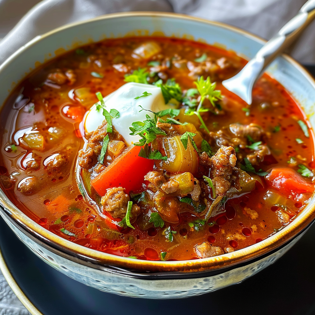Keto Stuffed Pepper Soup is a warm, comforting dish that brings the vibrant flavors of stuffed peppers to your bowl. This easy-to-make soup combines ground meat, colorful bell peppers, and aromatic spices simmered to perfection. Perfect for chilly evenings, it is low in carbs and high in flavor, making it an ideal choice for those following a ketogenic diet. Whip it up in under an hour and enjoy a satisfying meal that will have everyone asking for seconds.