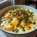 Transfer to bowls, sprinkle crispy bacon bits on top along with green onions for that extra flair! Enjoy every spoonful as if it were crafted by culinary angels—the kind who wear aprons made of clouds!