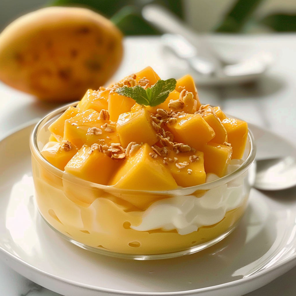 Mango-Dessert mit Joghurt is a delightful tropical treat that marries the juicy sweetness of ripe mangoes with creamy yogurt, creating a refreshing dessert that’s perfect for warm days.