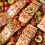 In conclusion, Mediterranean One-Pan Salmon offers a delightful blend of flavors and nutrition all in one simple dish. With its easy preparation and minimal cleanup, it’s perfect for busy weeknights or special occasions alike. The combination of fresh vegetables and succulent salmon not only satisfies your taste buds but also supports a healthy lifestyle. Whether you’re a seasoned cook or just starting out, this recipe will surely impress family and friends while keeping your meals vibrant and nutritious. Enjoy your culinary journey with this wholesome dish!