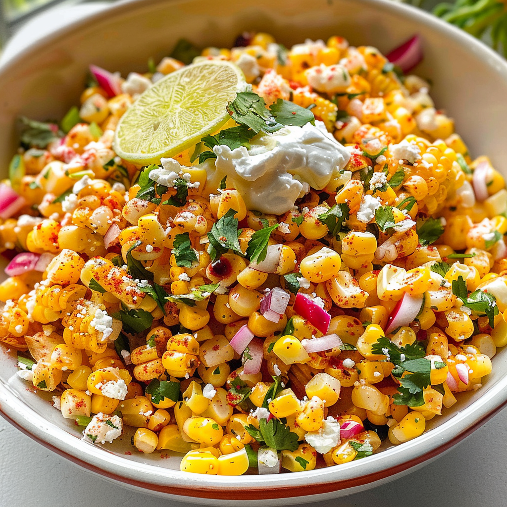 In conclusion, Mexican Street Corn Salad is not only easy to prepare but also packed with flavor that appeals to many palates. The combination of grilled corn with zesty lime and creamy cheese creates a delightful dish suited for any occasion. Whether served as a side or enjoyed on its own, this salad is sure to impress your family and friends. With its vibrant colors and bold flavors, the Mexican Street Corn Salad remains a favorite among many food lovers everywhere.
