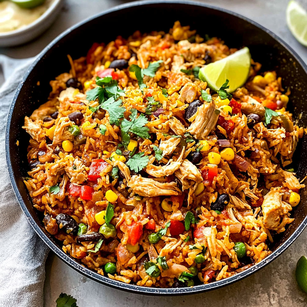 One-skillet Mexican Chicken And Rice is a flavorful and hearty dish that combines tender chicken, vibrant vegetables, and seasoned rice, all cooked in one skillet for convenience. This recipe typically features spices like cumin, chili powder, and paprika to enhance the taste. explore more recipes in our index It’s perfect for busy weeknights when you want a delicious meal without the hassle of multiple pots and pans. Additionally, this dish can be customized with your favorite toppings such as cilantro, avocado, or lime for added freshness.