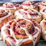 Pink Velvet Cinnamon Rolls are a delightful twist on the classic cinnamon roll, featuring a soft, velvety texture and a beautiful pink hue. The pink color comes from cocoa powder and red food coloring, giving these rolls an eye-catching appearance. They are typically filled with a luscious cinnamon-sugar mixture and topped with cream cheese frosting, making them perfect for special occasions or just a sweet treat at home. For more inspiration, check out this cinnamon pear walnut crumble recipe.