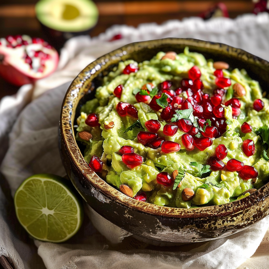 In summary, the Pomegranate Guacamole Recipe is an innovative twist on the classic dip that merges creamy avocado with the vibrant flavors of pomegranates. This dish is not only visually appealing but also rich in nutrients due to its wholesome ingredients. Whether served at parties or enjoyed as a light snack, this guacamole will delight your taste buds and impress your guests. Try making it today for a refreshing addition to your culinary repertoire!