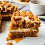 There are several fun variations you can try with pumpkin crumb cake! For instance, consider adding chocolate chips or nuts like walnuts or pecans to the batter for extra texture and flavor. You could also incorporate cream cheese frosting for a decadent touch. If you’re looking for a healthier option, substitute some of the all-purpose flour with whole wheat flour or add oats into the crumb topping for added nutrition without sacrificing taste. For more inspiration, check out this pecan pie bars recipe.