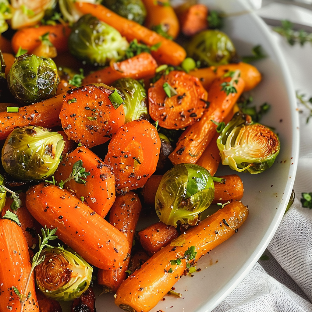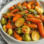 In conclusion, Roasted Carrots and Brussels Sprouts are not only simple to prepare but also packed with flavor and nutrition. This dish enhances any meal while offering versatility in customization options through various seasonings or additions. Whether served at a holiday feast or enjoyed on a weeknight dinner table, Roasted Carrots and Brussels Sprouts will surely please everyone’s palate. Try this delightful recipe today!