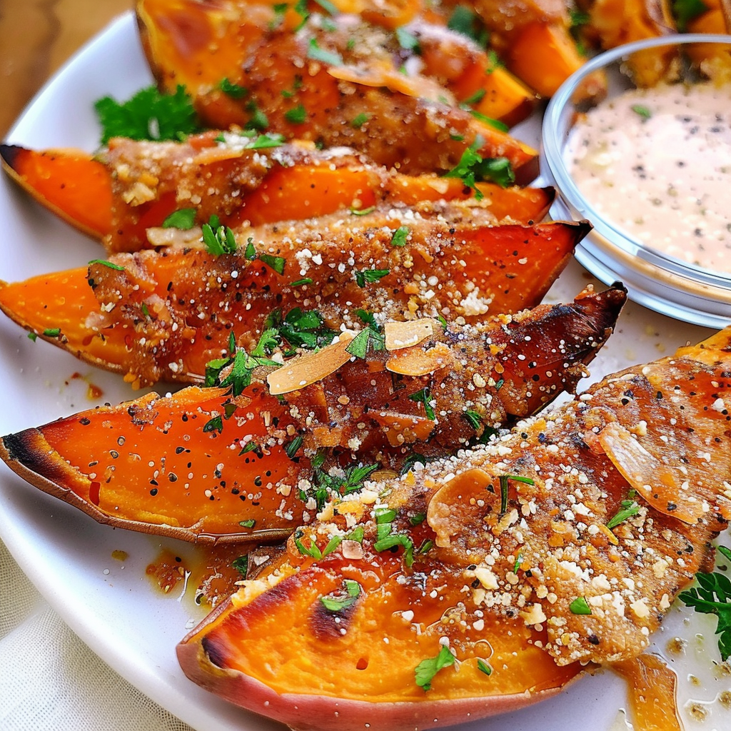 In summary, the Roasted Sweet Potato Recipe with Garlic and Parmesan delivers a deliciously simple side dish that enhances any meal. Its combination of sweet flavors from the potatoes, savory garlic, and rich Parmesan creates an irresistible taste sensation. Whether you’re preparing it for dinner or a gathering, this recipe is sure to impress your guests while being easy enough for everyday cooking!