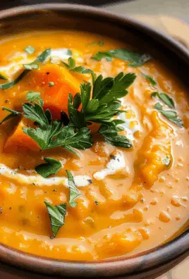 Savory Sweet Potato and Carrot Soup is a delightful blend of roasted sweet potatoes and carrots, simmered to perfection with aromatic spices. This creamy, nourishing soup is perfect for cozy evenings or when you need a comforting meal. Enhanced with coconut milk, it strikes a balance between sweetness and warmth, making it a favorite for all ages. Easy to prepare and versatile, this soup will not only warm your belly but also bring joy to your dining table.
