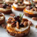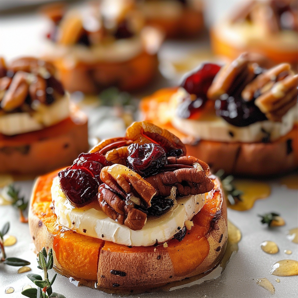 Scrumptious Sweet Potato Rounds with Brie, Cranberry & Pecans