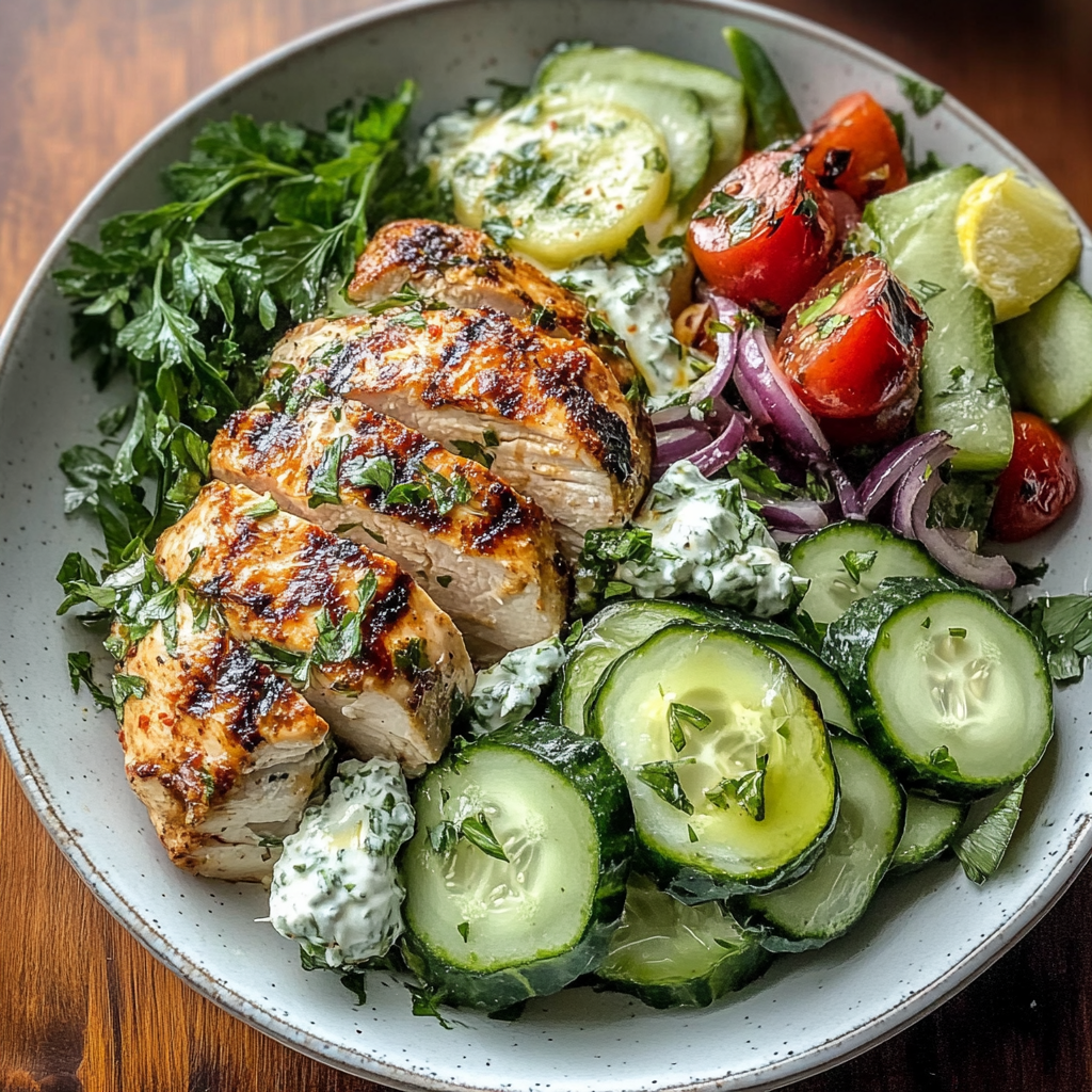 Indulge in the vibrant flavors of Spicy Mediterranean Chicken paired with a refreshing Creamy Cucumber Salad. This dish features tender, marinated chicken grilled to perfection and served alongside a cool, tangy salad made with Greek yogurt and fresh herbs. Perfect for summer barbecues or cozy family dinners, this meal transforms any occasion into a culinary adventure.
