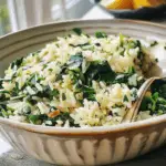 Transfer your beautiful Spinach Rice onto plates or into bowls. Garnish with lemon wedges or even some grated Parmesan if you’re feeling fancy!
