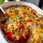 Stuffed Pepper Casserole – Hearty Family Meal is a delicious and filling dish that combines all the flavors of traditional stuffed peppers in a convenient, one-pan recipe. This casserole typically features ground meat, bell peppers, rice, and a rich tomato sauce, all baked together for a comforting meal. Explore our Recipe Index It’s perfect for busy weeknights or family gatherings, offering both nutrition and flavor. By serving it as a casserole, you save time on preparation while still enjoying the classic taste of stuffed peppers.