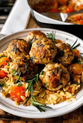 Amazing Baked Rosemary Chicken Meatballs with Tomato Orzo Delight