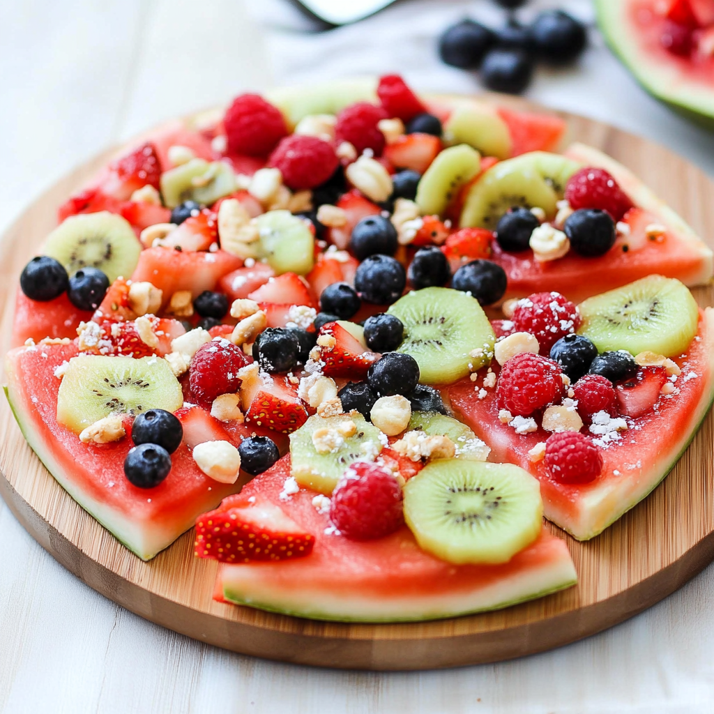 In conclusion, Summer Snacks: Healthy Watermelon Fruit Pizza offers a delightful way to enjoy fresh fruit during the warmer months. With its vibrant colors and customizable toppings, this dish appeals to both kids and adults alike. It’s simple to prepare and can be made ahead of time for convenience at gatherings or family outings. Embrace this refreshing treat as part of your summer festivities and stay healthy while indulging!
