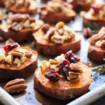 In conclusion, Sweet Potato Rounds with Cranberry & Pecans offers a unique blend of flavors that elevate any meal. This recipe is not only easy to prepare but also versatile enough for various occasions. The combination of roasted sweet potatoes, tart cranberries, and crunchy pecans creates a delightful dish packed with nutrition and taste. Whether served as an appetizer or side dish, these sweet potato rounds will surely become a favorite among family and friends. Enjoy this wholesome treat!