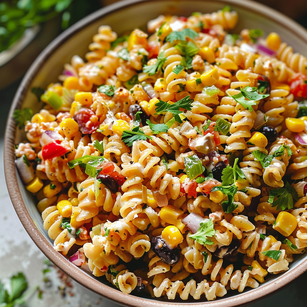 Start by boiling your pasta until al dente, then drain and rinse with cold water. While the pasta cools, roast your corn until it’s slightly charred for that signature street corn flavor. Combine everything in a large bowl, adding lime juice and spices last for an extra zing.