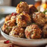 In summary, turkey stuffing balls are a delightful addition to any meal or celebration. They combine the rich flavors of turkey with classic stuffing ingredients to create a tasty dish that everyone will love. Whether enjoyed as an appetizer or side dish, these flavorful bites are sure to impress your guests. Don’t hesitate to customize them with your favorite herbs and spices for added flair. Give turkey stuffing balls a try at your next gathering; they might just become a new family favorite! For more inspiration, check out this Amish country casserole recipe.