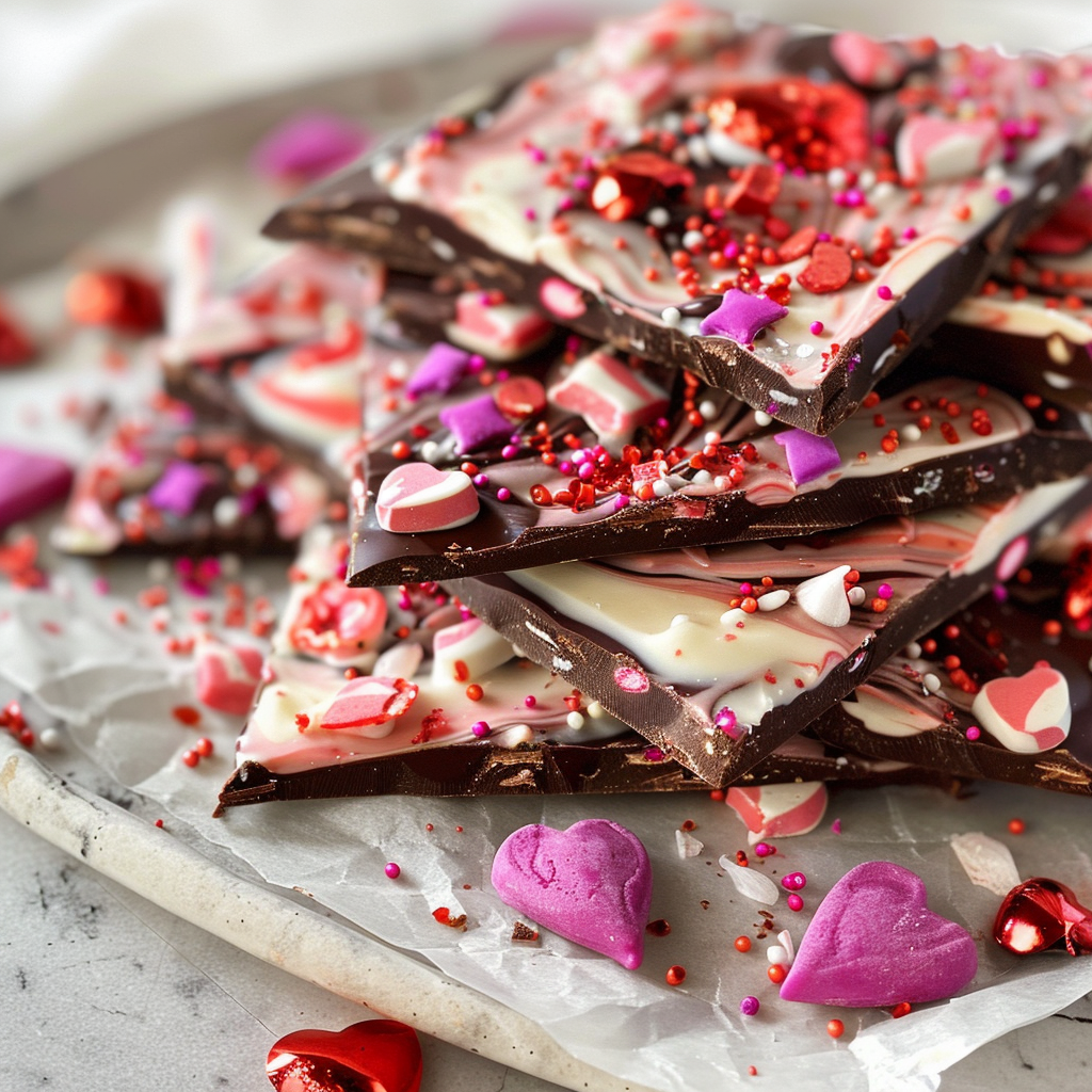 Valentine Chocolate Bark is a delightful treat made by melting chocolate and spreading it out to create a thin layer. Once the chocolate sets, it’s often topped with festive ingredients like sprinkles, nuts, or dried fruits. This sweet confection is not only simple to make but also customizable, making it perfect for sharing on Valentine’s Day. Whether you choose dark, milk, or white chocolate, Valentine Chocolate Bark can be tailored to suit your taste preferences. For more inspiration, check out this peppermint dark chocolate truffles recipe.