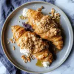 Spread an ample amount of the whipped ricotta mixture over each half of the croissant. Don’t be shy—this is your time to shine! Drizzle some extra honey over the top because life is too short to skimp on sweetness.